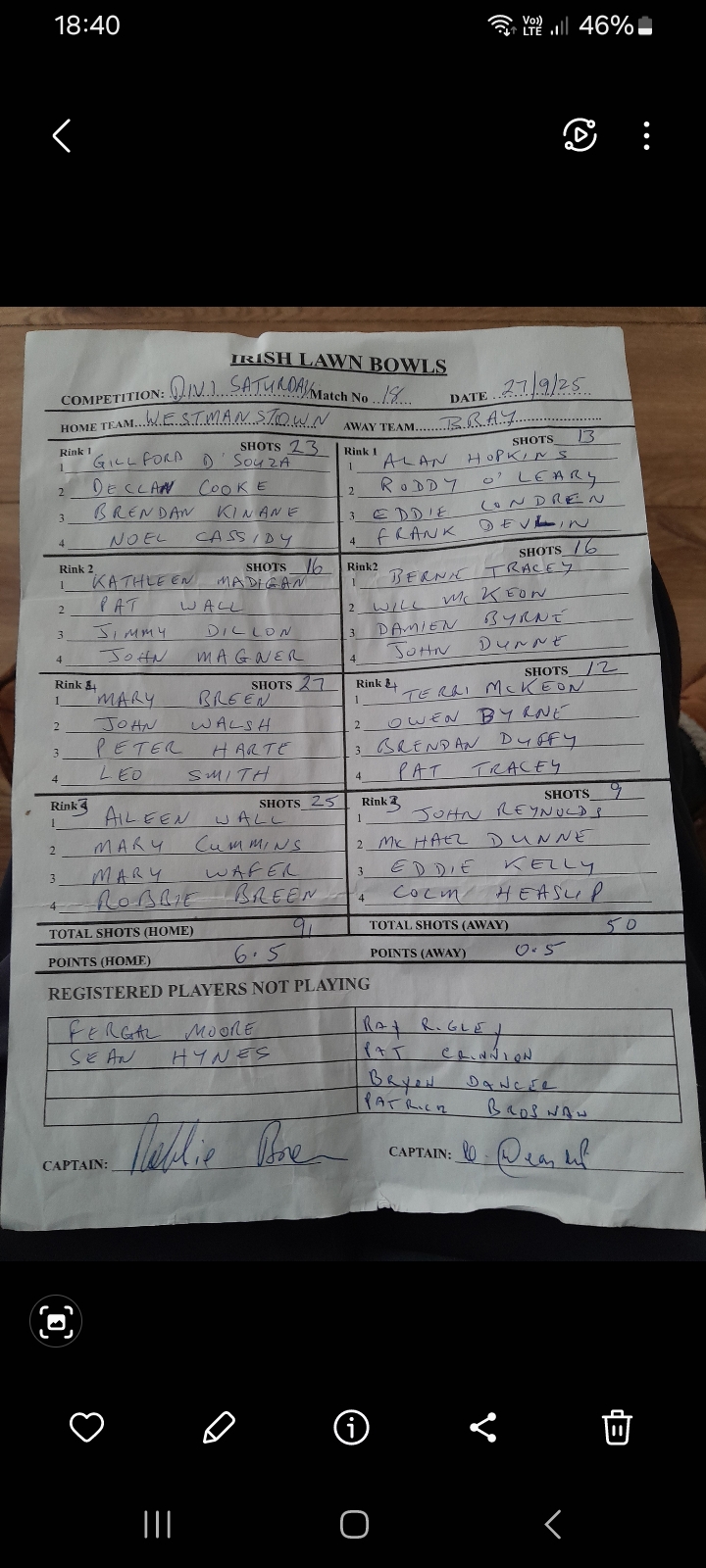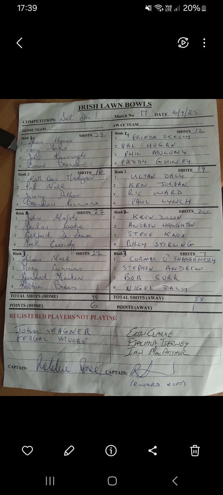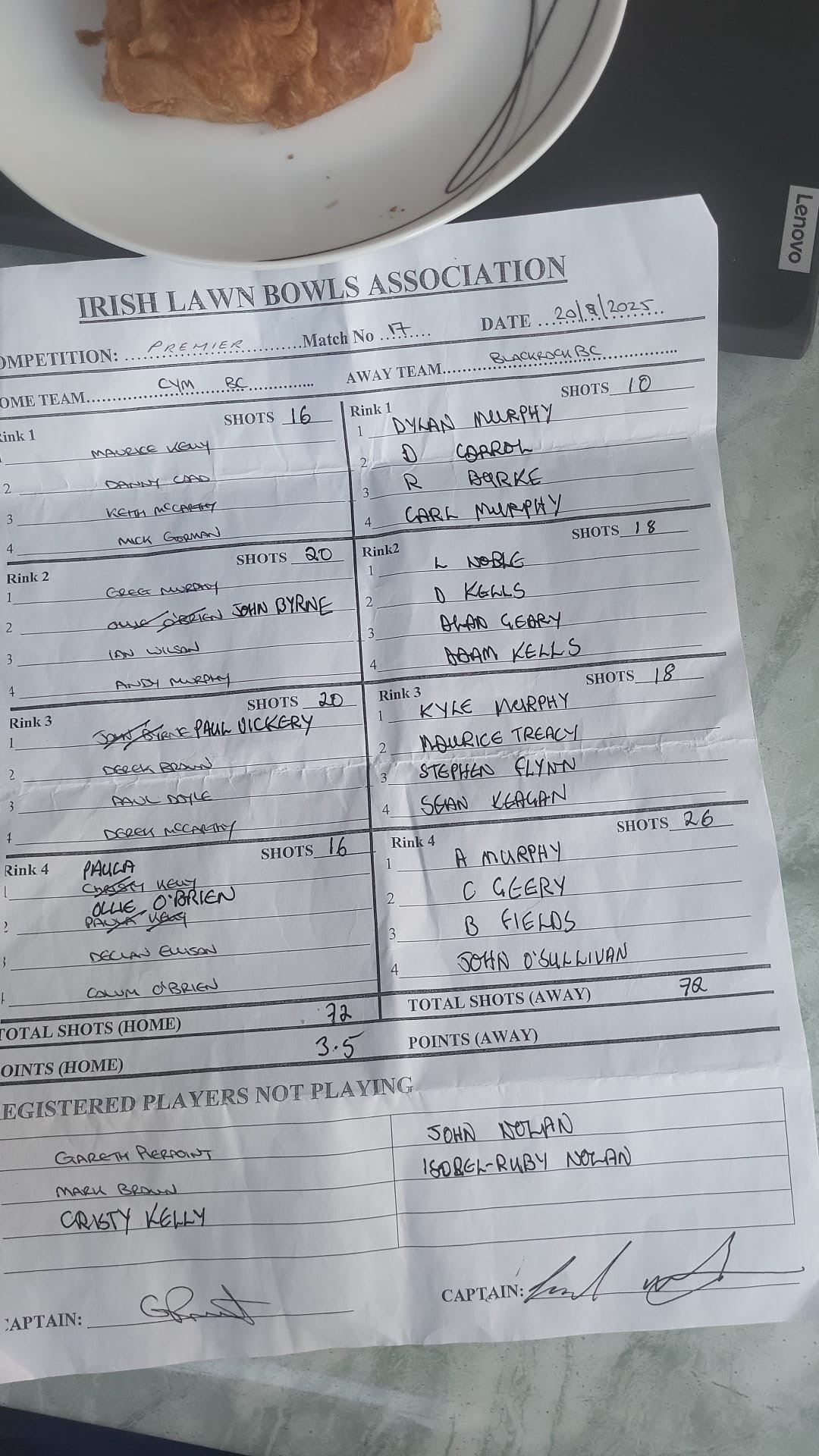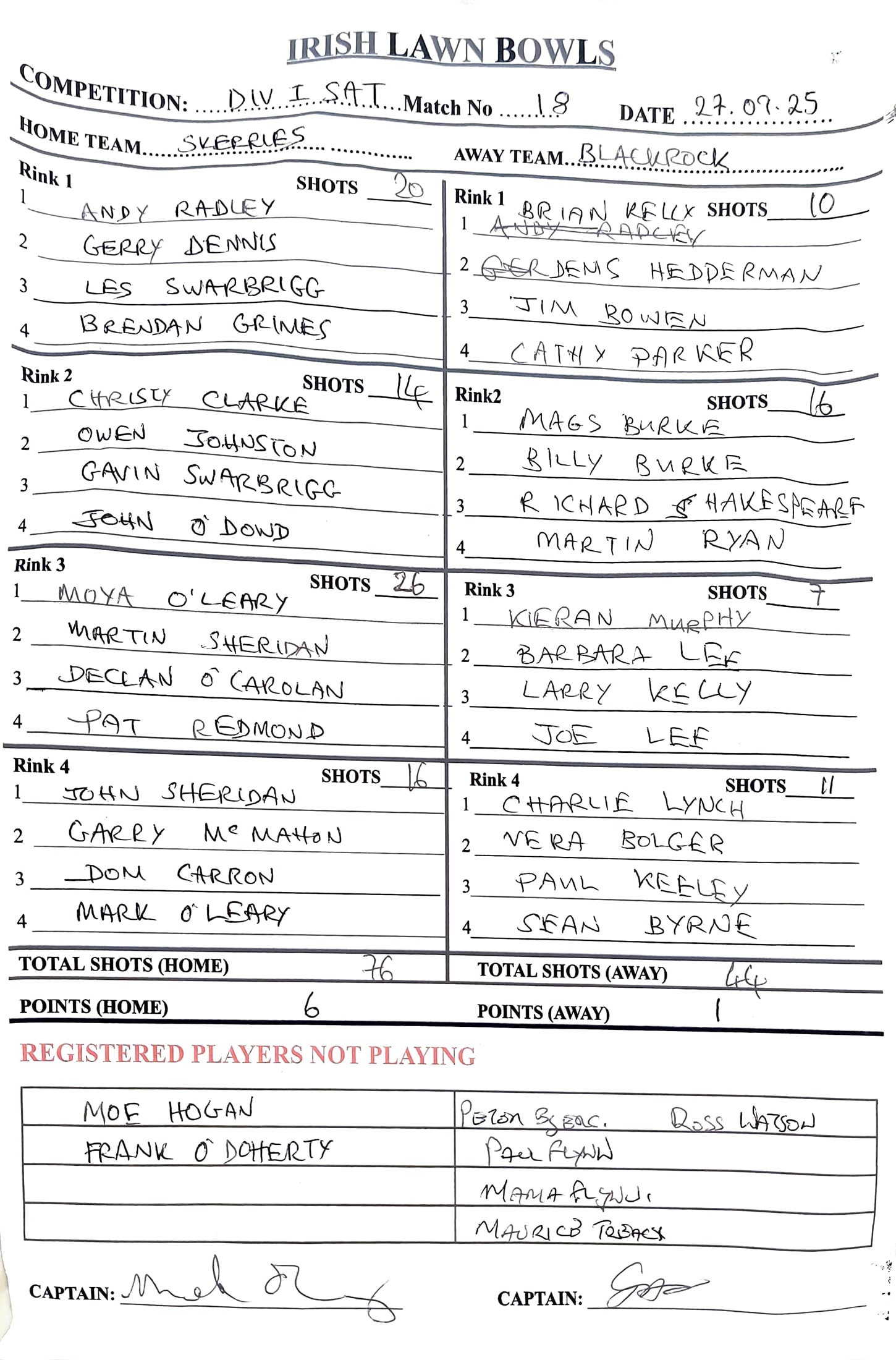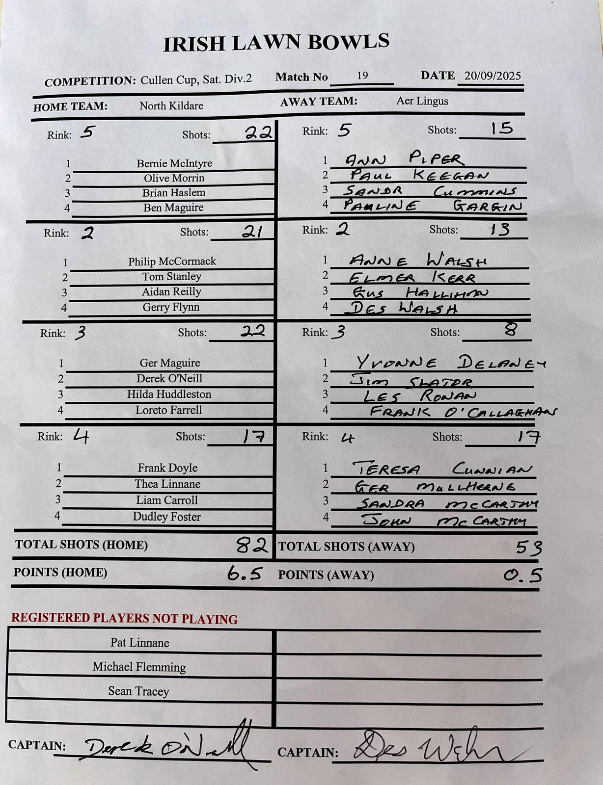 | 25/09/2025 |  | Thur Div1 Ladies |