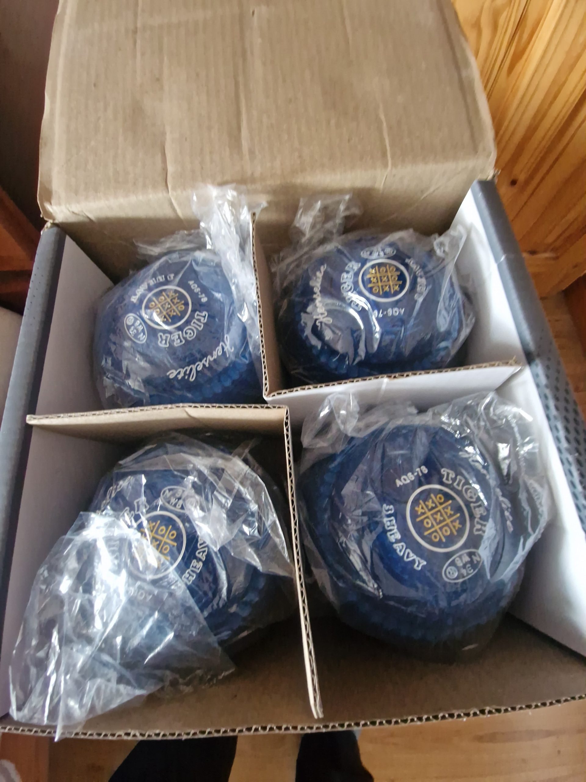 Item: Set of 4 x Bowls, Hensalite Tiger, size 3 Heavy, Midnight Blue. Mega Gripped